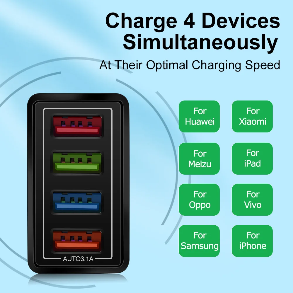 FLOVEME красочные 4USB мобильный телефон Зарядное устройство 3A планшет путешествия Зарядное устройство зарядная головка США Стандартный Европейский Стандартный Зарядное устройство
