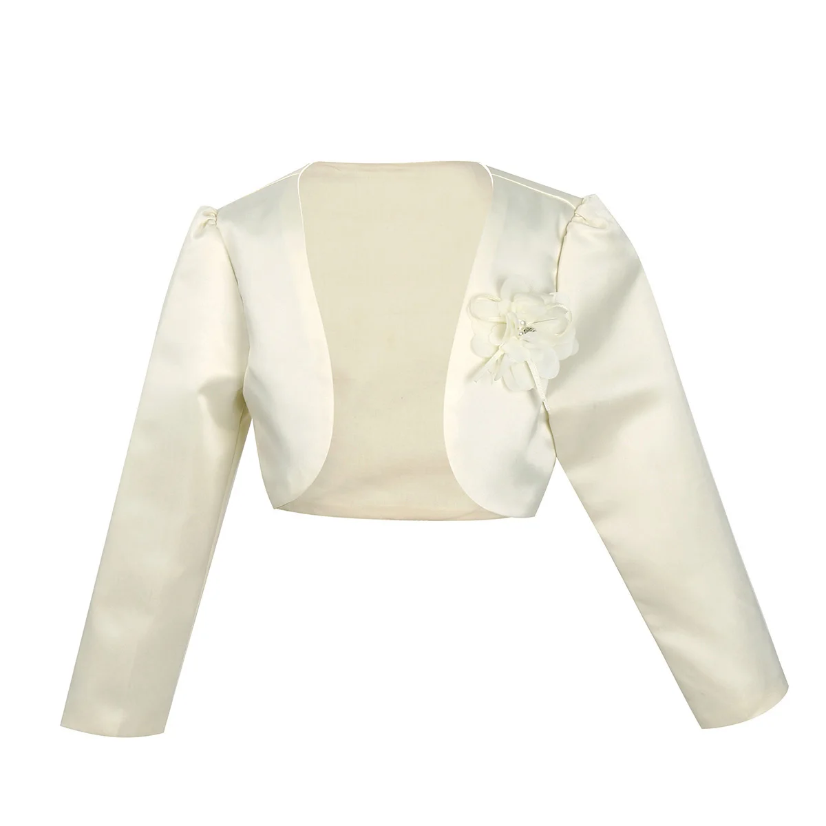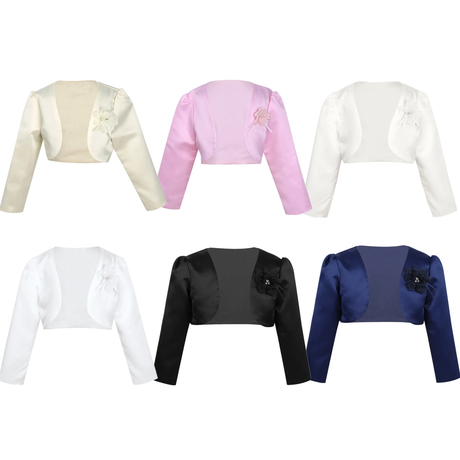 Очаровательная куртка-болеро для девочек, кардиган, свитер.Длинные рукава, с подкладкой, открытый кардиган.Спереди с 3D цветком для украшения.Подходит вечерние, свадьбы, дня рождения или повседневной носки.