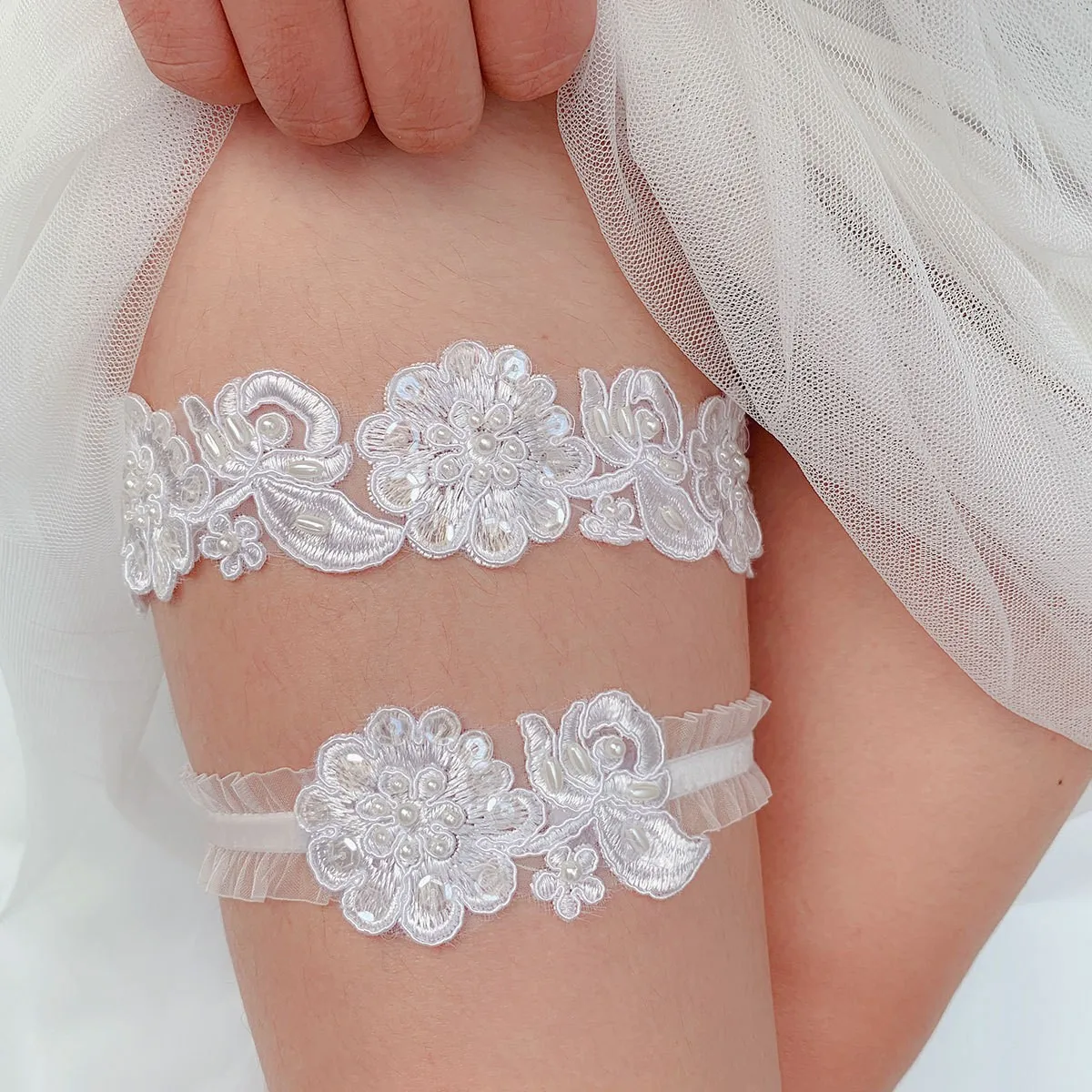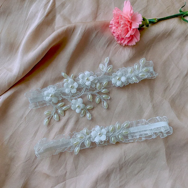 Подвязки для женщин, свадебные, с вышивкой, с цветами, бисером, белые, синие