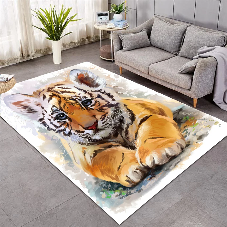 Постельные принадлежности, коврик с тигром, акварельный ковер для гостиной, нескользящий напольный коврик с дикими животными, черно-белые ковры, мультяшный домашний декор