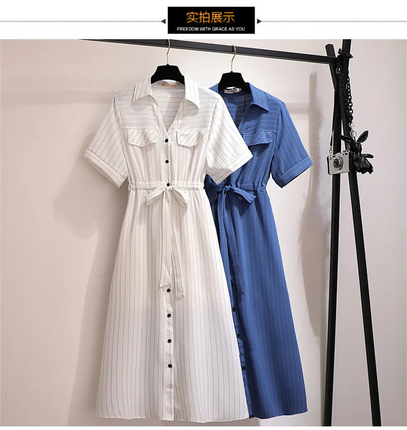 Женское летнее платье-рубашка в полоску, с длинным отложным воротни...