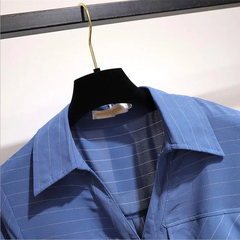 Женское платье-рубашка с V-образным вырезом, в полоску