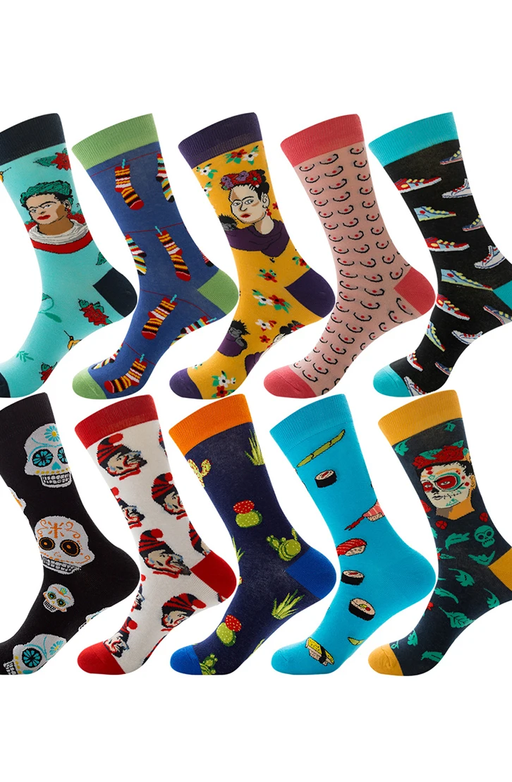 Женские счастливые носки с абстрактными мультяшными изображениями, страшные с принтом клоуна, кактуса, суши, 100% бриллиантов, унисекс, для женщин и мужчин