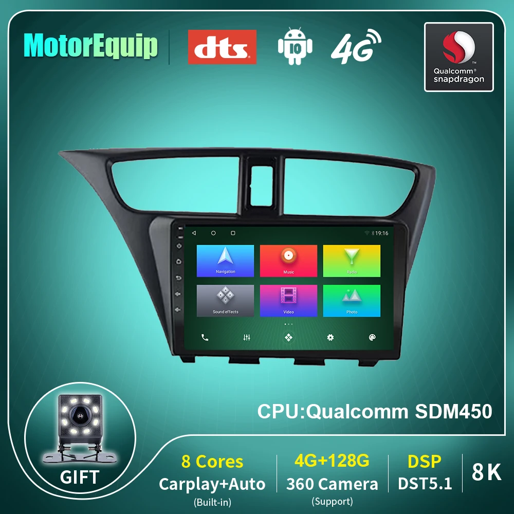 Автомагнитола для Honda CIVIC Hatchback 2012-2017, Android 10, 4G, Wi-Fi, BT, Carplay, Hi-Fi, DSP, мультимедийный проигрыватель, 4G, 128G