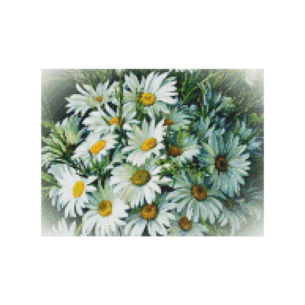 Белая Цветочная корзина с ромашками Алмазная картина круглая полная...