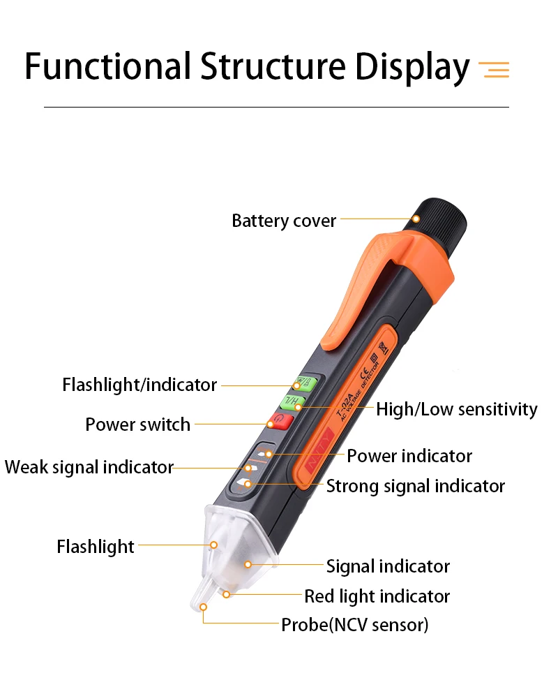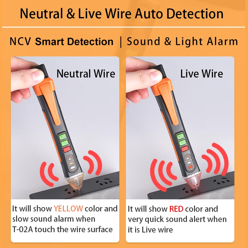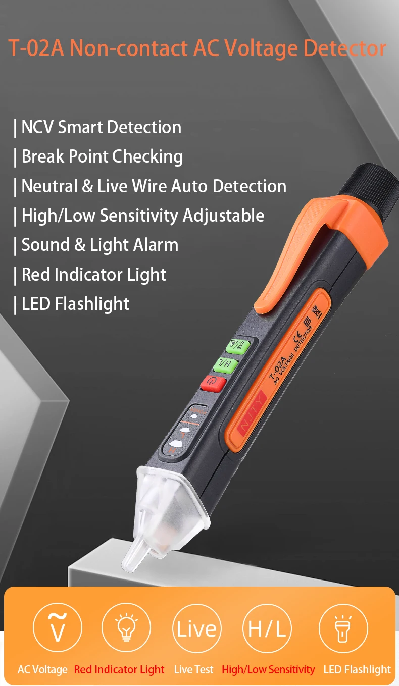 Электрический тестер Напряжение индикатор T-02A Смарт бесконтактный AC Напряжение тестер с ЖК-экраном звуковой сигнал тревоги ручка живой провод проверить останова отслеживания