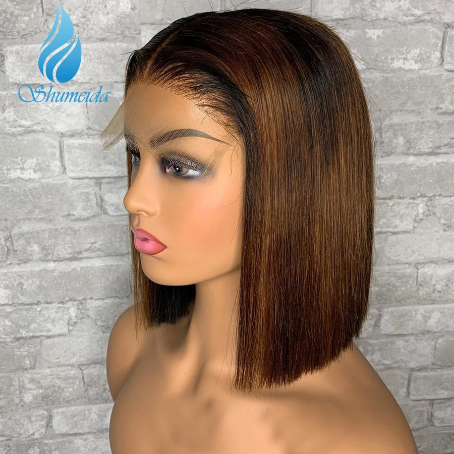 Shumeida Выделите коричневый Цвет 13*4 Синтетические волосы на кружеве парики перуанские Remy (Реми человеческие волосы парики для волос Синтетические парики шнурка предварительно вырезанные