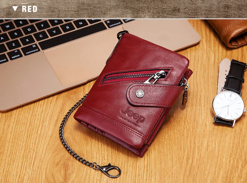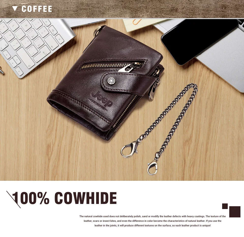 Качественный мужской кошелек из натуральной воловьей кожи Rfid, модный кошелек для монет, маленький мини держатель для карт, портфель с цепочкой, мужской кошелек