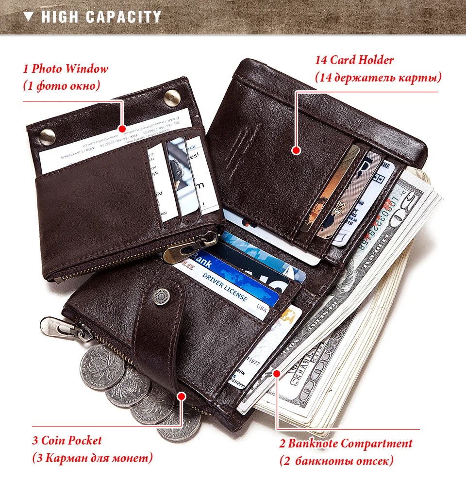 100% мужские кошельки из натуральной кожи, с отделением для премиум...