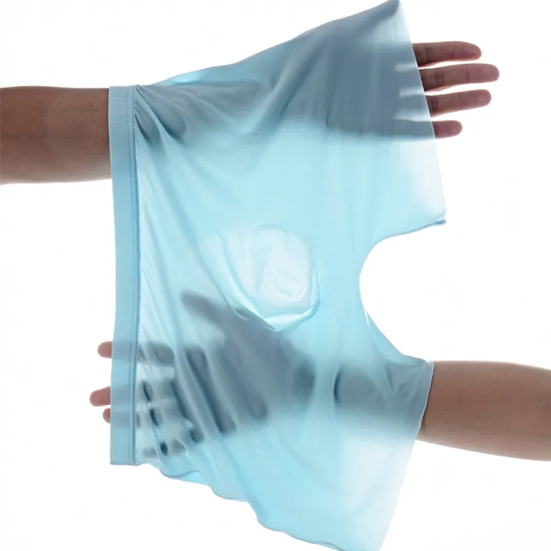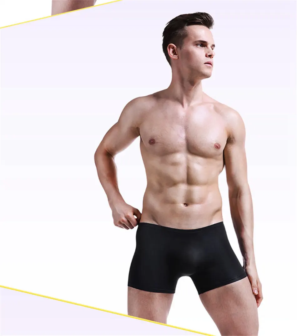 4 шт.лот, мужское сексуальное нижнее белье, мужские боксеры из ледяного шелка, бесшовное Прозрачное нижнее белье, шорты, мужское нижнее белье черного цвета
