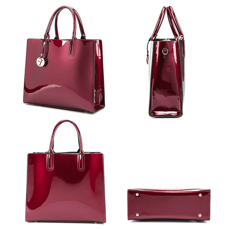 3 комплекта, женские сумки высокого качества из лакированной кожи, женская сумка-мессенджер, роскошная сумка-тоут + женская сумка через плечо, клатч