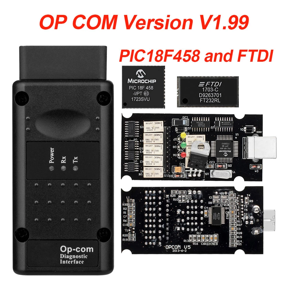Opcom V1.99 с PIC18F458 FTDI op-com OBD2 автомобильный диагностический инструмент CAN-Шина может быть flash updateV1.99