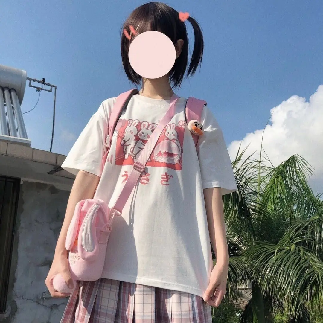 Женская футболка в стиле Харадзюку ZOGAA, летняя Милая уличная одежда с принтом кролика в Корейском стиле, женские повседневные топы, Y2K одежда