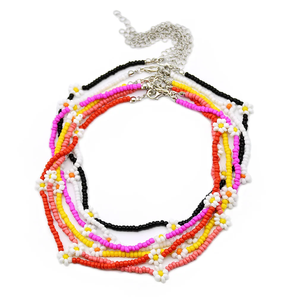 Женское ожерелье с цветными бусинами, ожерелье ручной работы с бусинами и маргаритками в стиле бохо, Подарочная бижутерия, новинка весны 2021