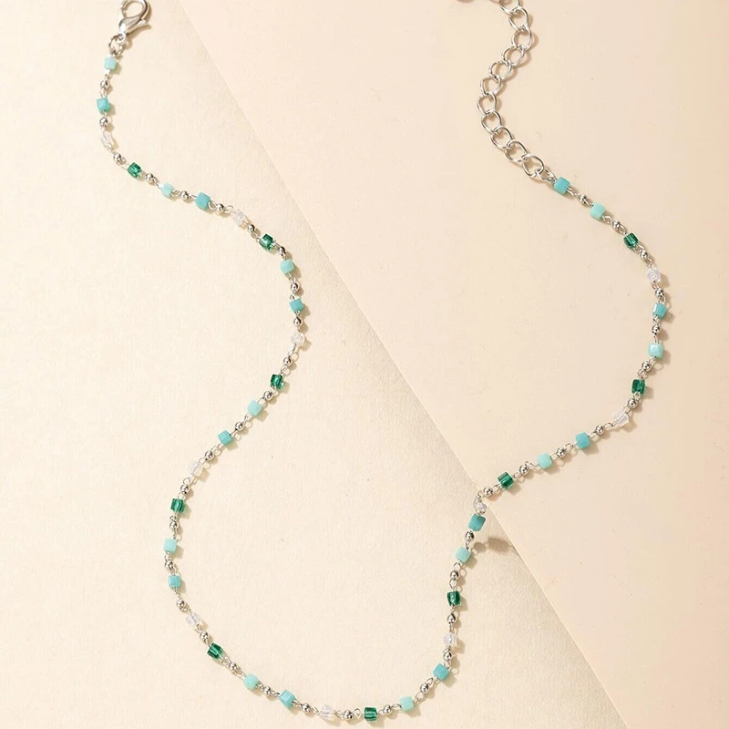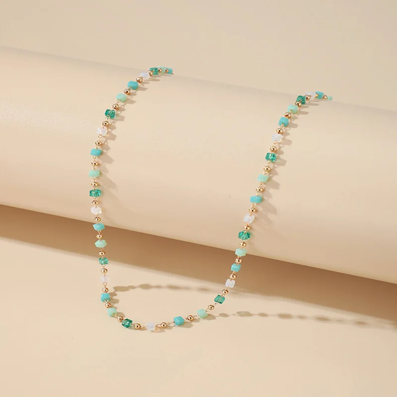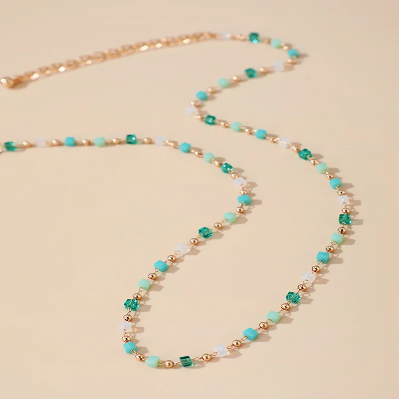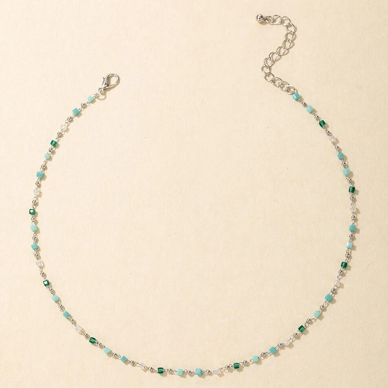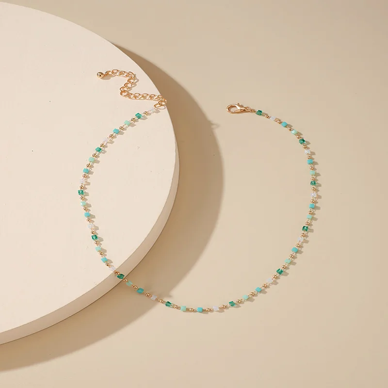 Цепочка на шею Женская, Геометрическая, квадратная, летняя, разноцветное ожерелье из бисера