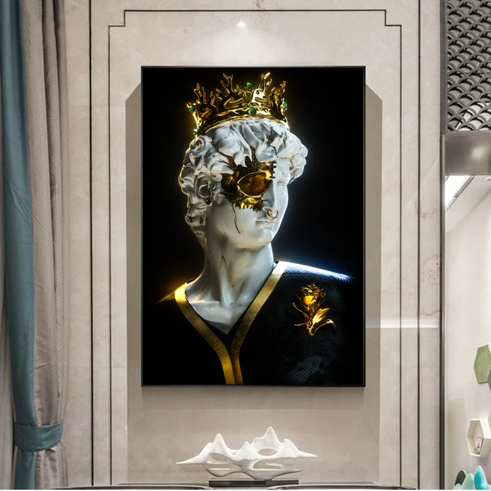 Золотая Эстетическая скульптура Давида с короной, холст, живопись, статуя, плакаты и принты, настенные картины для гостиной, домашний декор