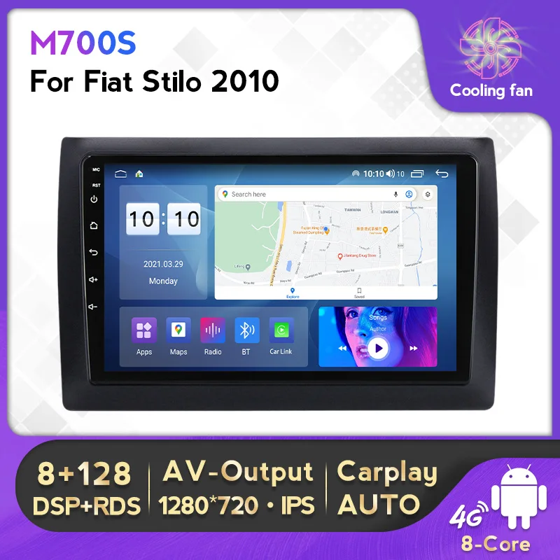 Автомобильный мультимедийный плеер 9 ''6 + 128G 2 Din DSP IPS Android 10 для Fiat Stilo 2002-2010, головное устройство, навигация GPS, радио, стерео, без DVD