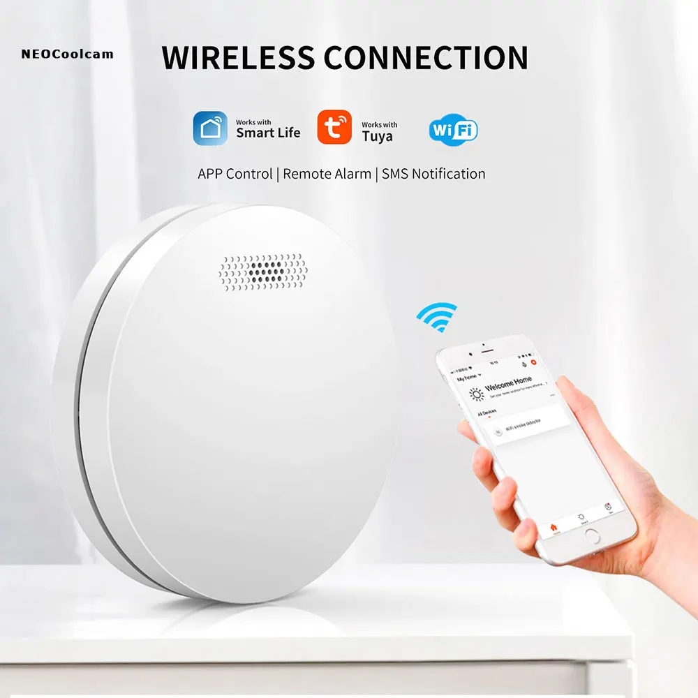 Беспроводной Wi-Fi датчик дыма NEOCOOLCAM, детектор, звукосветильник вая сигнализация, система домашней безопасности, работает с приложением Tuya Smart Life