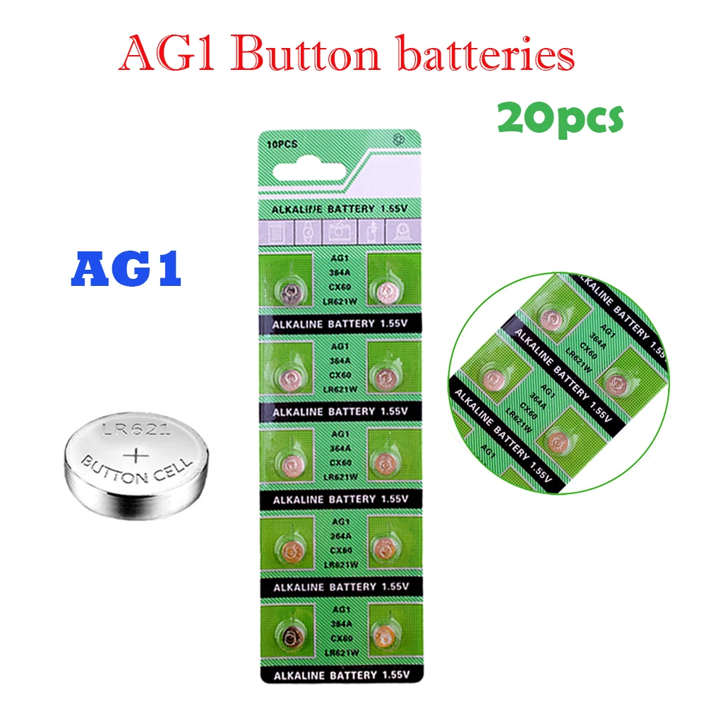 Батарейки для часов AG1, 13 мА ч, 1,55 В, 1 кнопка, 20 шт.
