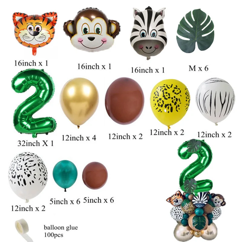 Материал: латекс и фольга Размер воздушного шара: 32 дюйма Размер латексных шаров: 12 или 5 дюймов Размер воздушного шара: около 16 дюймов Посылка: 35 шт./компл. (1 шт. 32 дюймов шара с цифрой + 12 шт. в упаковке, 12 дюймов латексный воздушный шар + 12 шт. 5 дюймов латексный воздушный шар s + 6 шт. листьев + 3 шт. животных шар + 1 шт. клей)