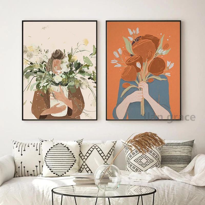 Абстрактная женщина Цветочная иллюстрация плакат и принты женский Букет цветов летнее растение Холст Живопись стены Искусство Картины Декор