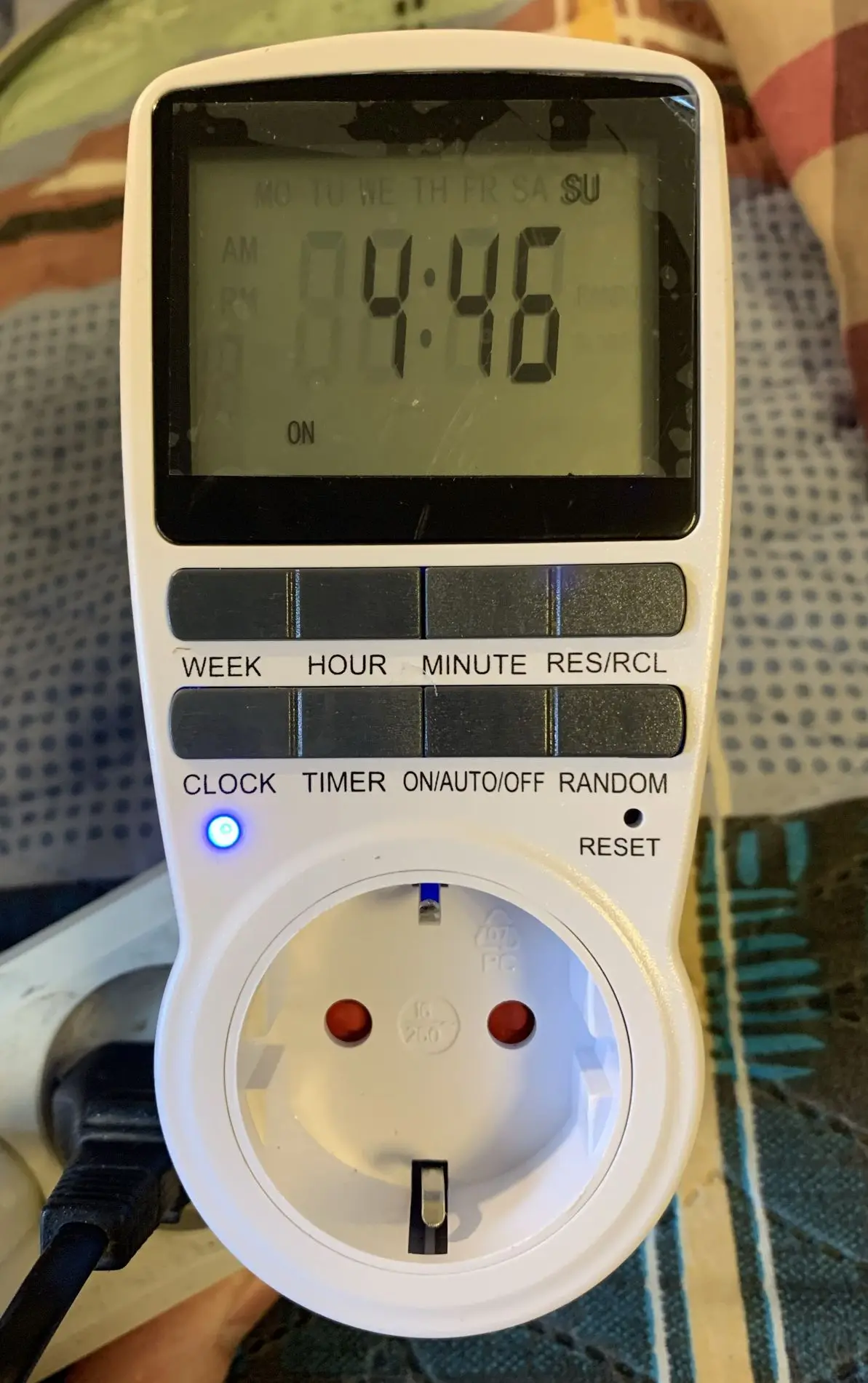 встроенный аккумулятор. так что можно выставить все что надо не втыкая в розетку. Минус в том что нельзя поставить быстро типа от этого момента и на 2 часа. надо лезть в таймеры и устанавливать на включение и выключение и будет он потом каждую неделю в это время работать. хорошо подойдёт для рутинных задач аквариума, антикамарина... в общем на каждый день. я брала больше для зарядки батареек и просушки зимой обуви. несколько ошиблась или не до разобралась. там есть режим рандом который вообще не поняла для чего. Инструкция на английском.
