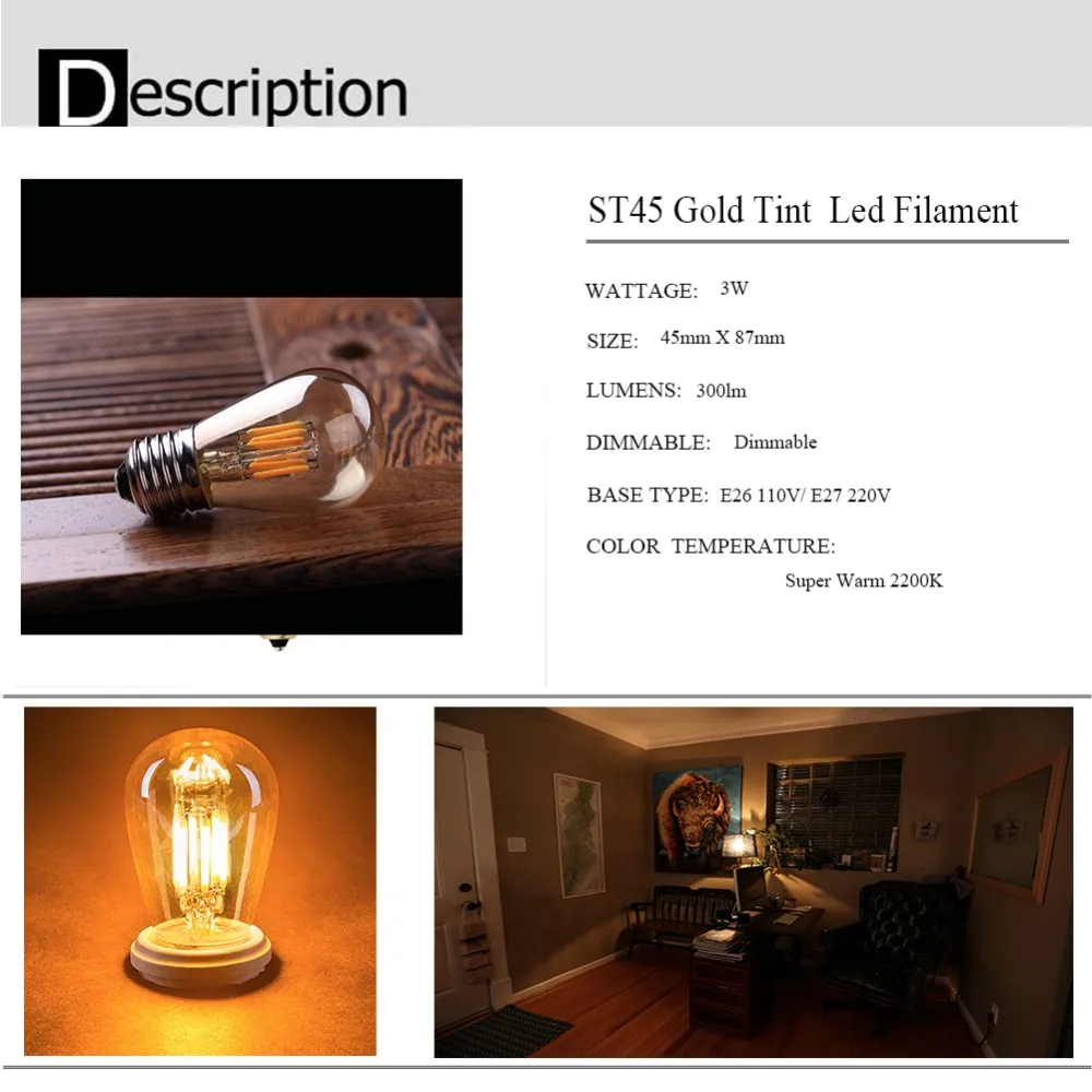 Модель: ST45Gold tent EdisonLED Filament