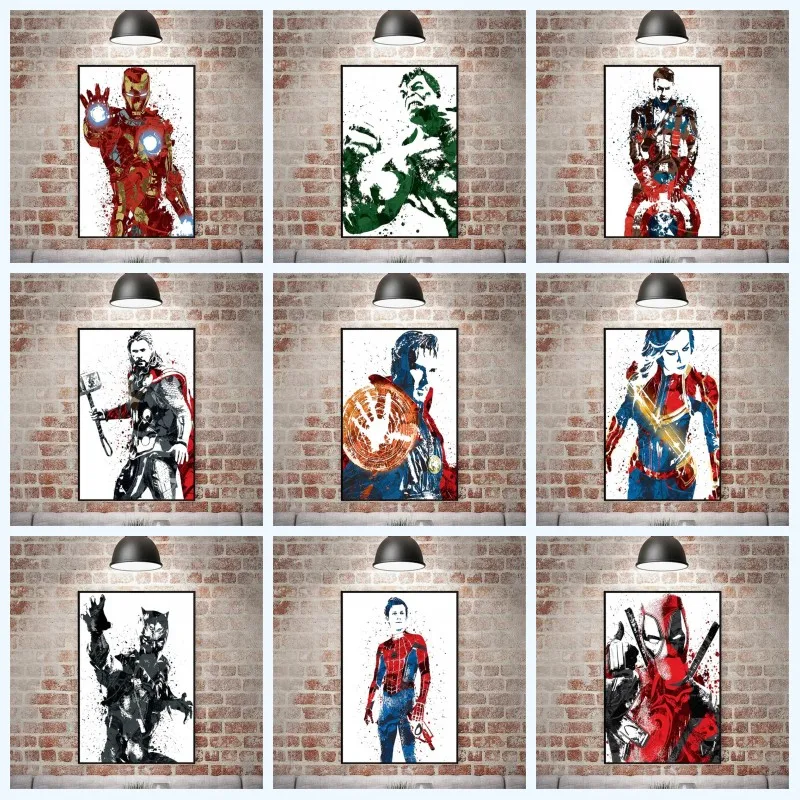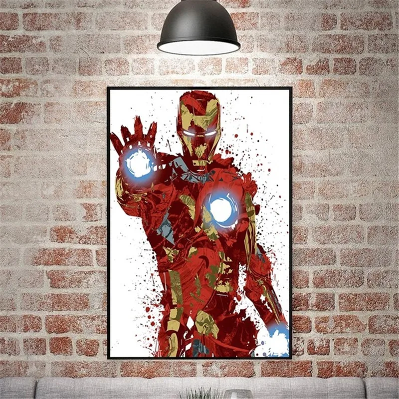 Disney с принтами "Marvel", "Мстители" супергерой акварельная картина на холсте с принтом Железный человек, постер фильма Wall Art Картина без рамки для детской комнаты, домашний декор