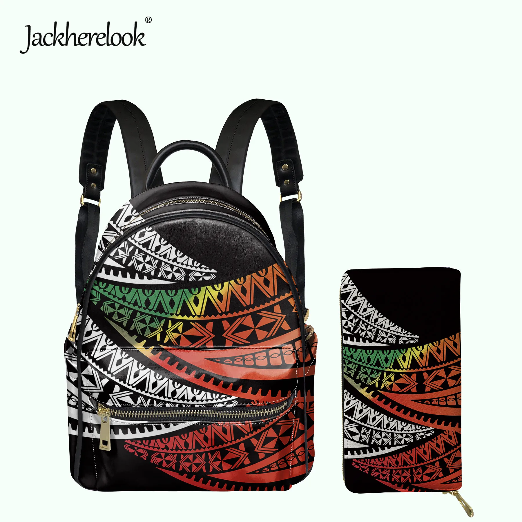 Jackherelook Pohnpei, Самоа, полинезийский дизайн, женский маленький рюкзак из ПУ, кошелек, 2 шт.компл., женская сумка, маленькая школьная сумка для девочек