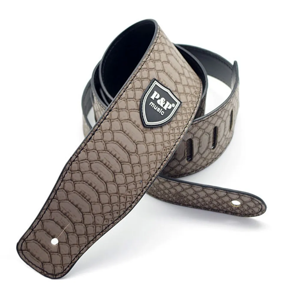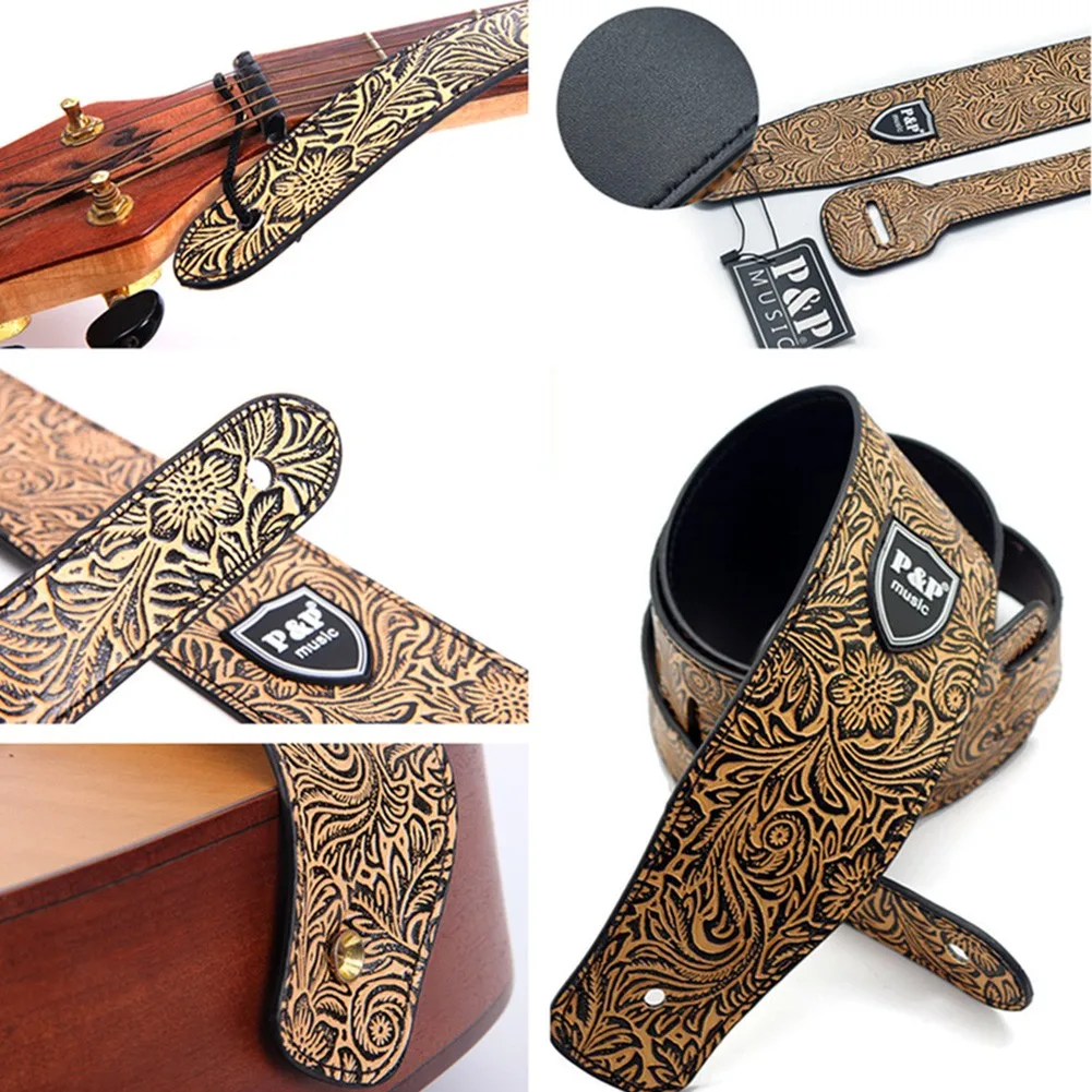 Регулируемый сверхмощный кожаный ремень P P для басов из ПУ кожи рельефный акустический Электрический бас-ремень для акустической классической гитары