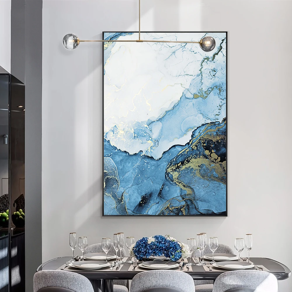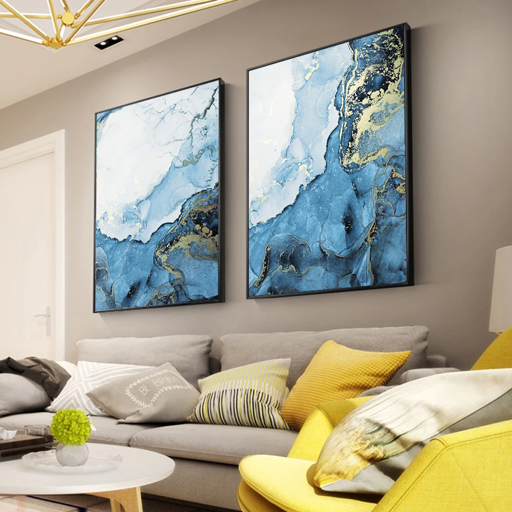 Золотая и синяя волна Абстрактная живопись Печать на холсте плакаты Современные Роскошные Настенные картины для гостиной Декор
