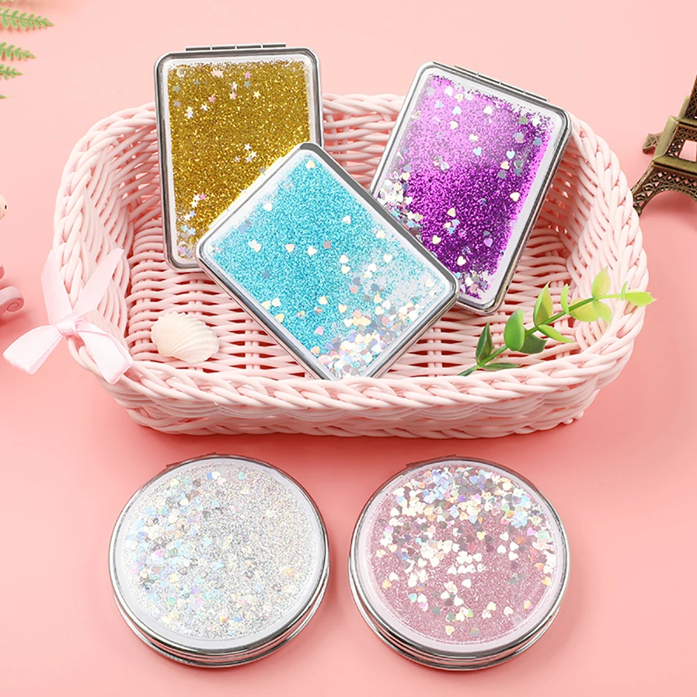 Легкое косметическое зеркало компактное карманное круглое косметическое зеркало блестящее зыбучее песочное милое косметическое декоративное зеркало