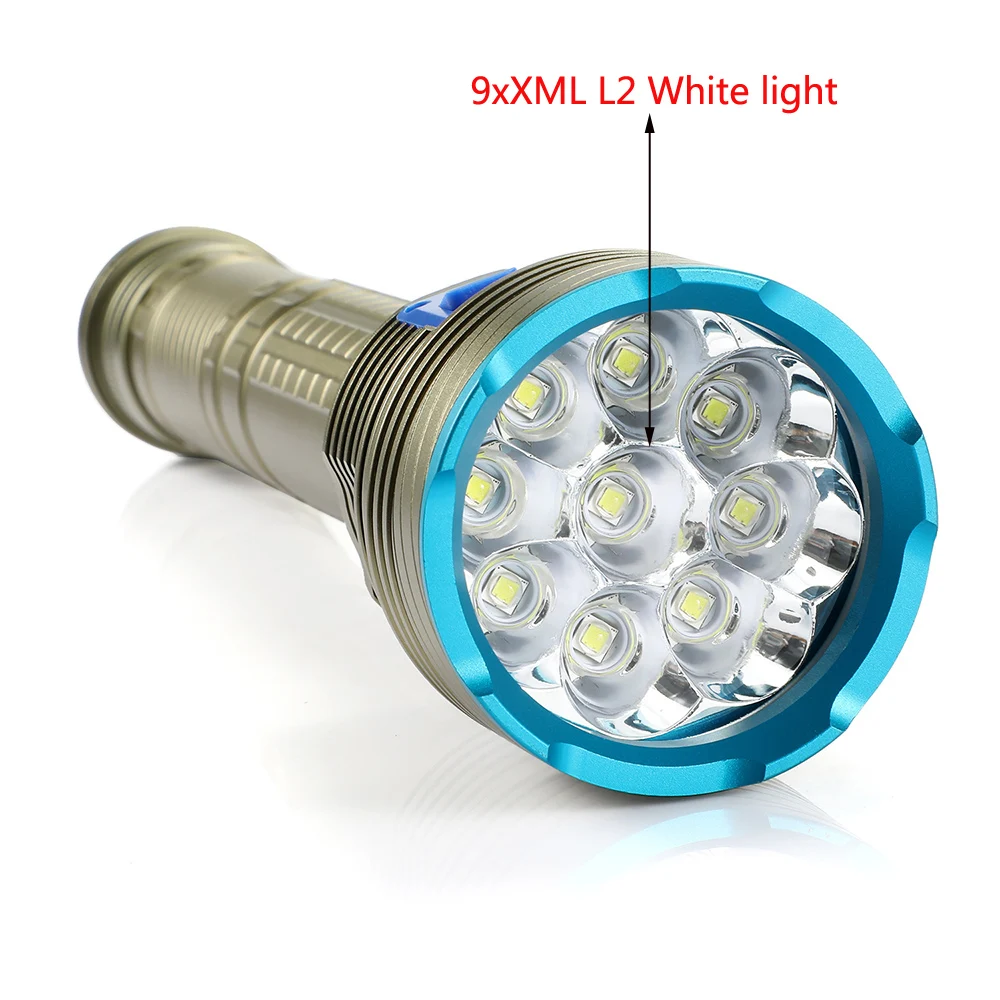 Профессиональный Дайвинг высокомощный 9xXM-L2 светодиодный белыйжелтый светильник подводный супер яркий погружения вспышки света светильник IPX8 тактический фонарь Фонари