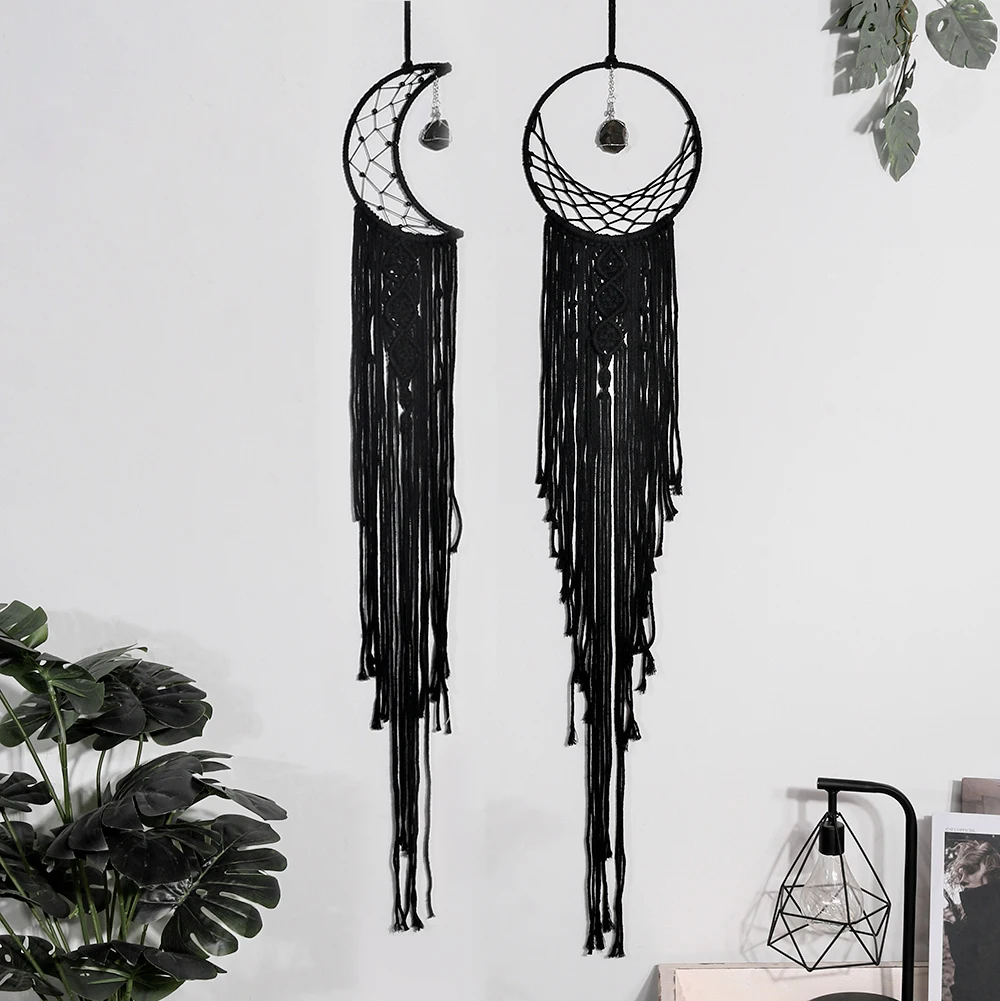 Черное Солнце Луна Ловец снов скандинавский макраме Ловец снов с кристаллами стена комната Домашний Декор Двор Сад Спальня украшение