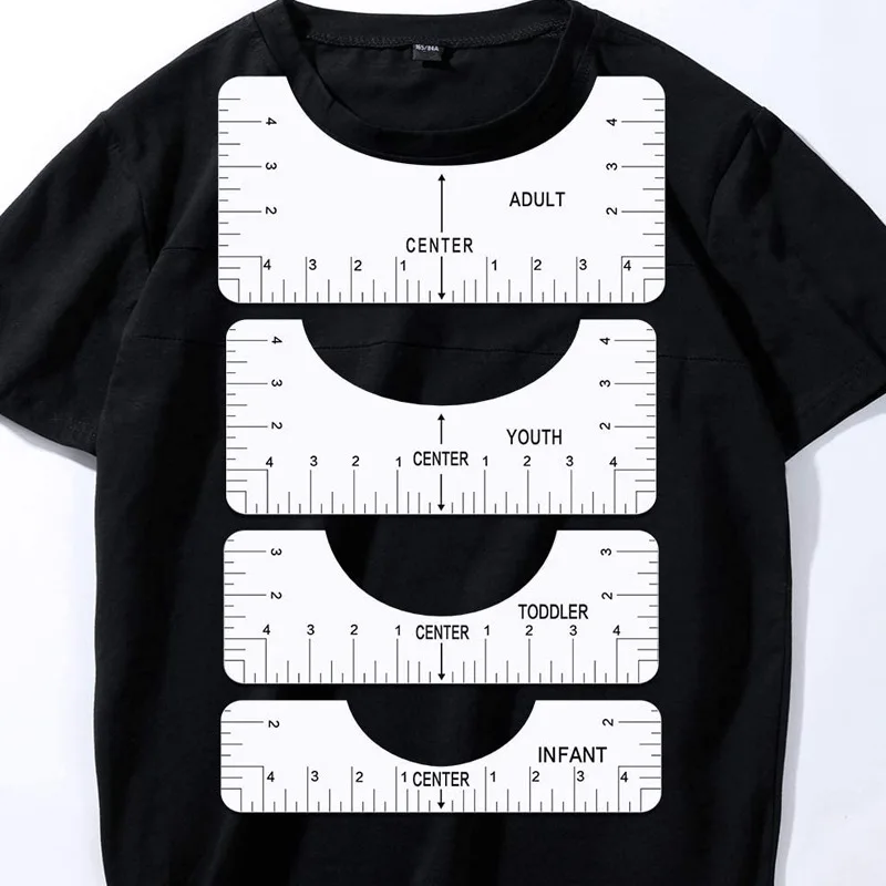 5. Посылка: вы получите 4 линейки футболок. Инструмент выравнивания футболки поможет вам выровнять влево, по центру или вправо и сэкономить время на дизайне.