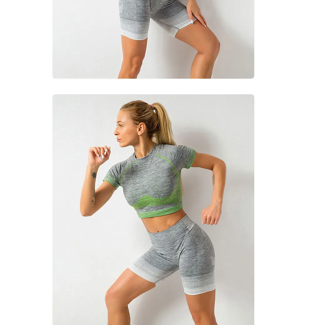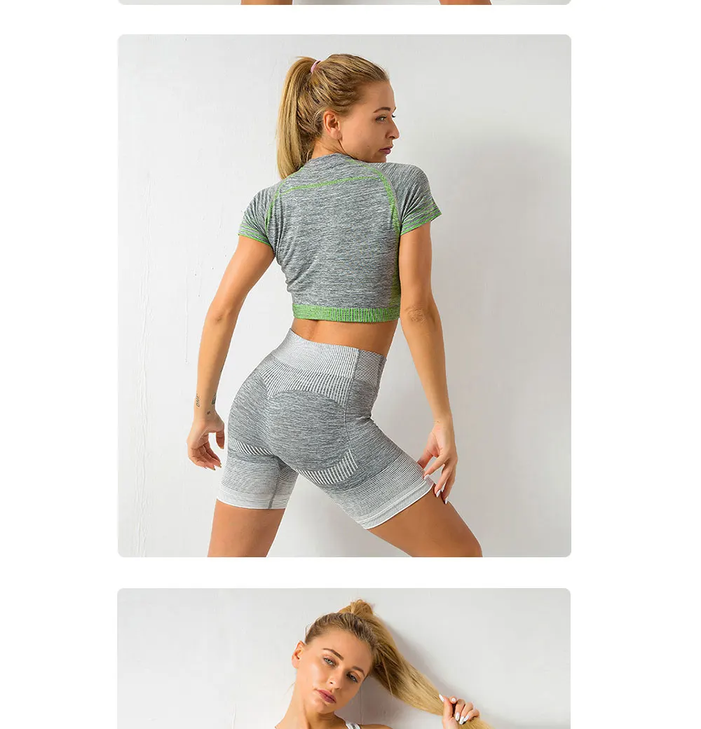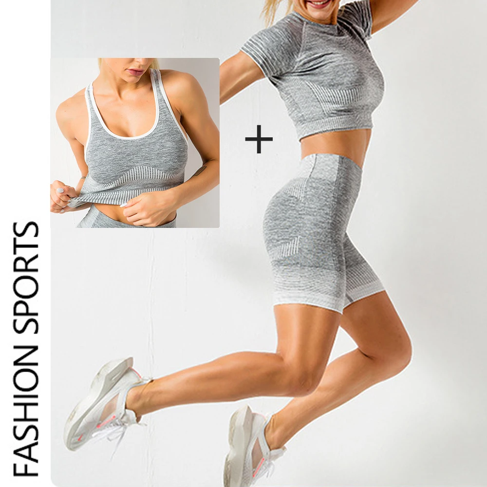 Бесшовные шорты для йоги, детская спортивная тренировочная одежда, короткий топ с коротким рукавом, леггинсы с высокой талией, спортивная одежда для бега
