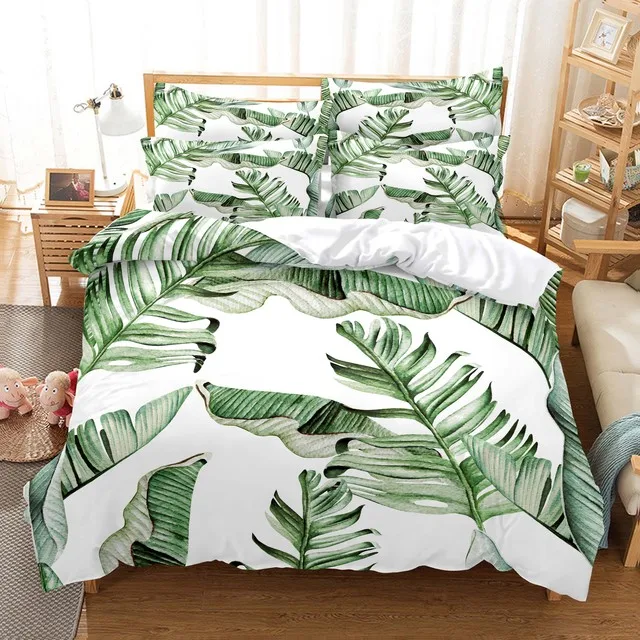 Комплект постельного белья Green, постельные принадлежности с изображением листьев, модный, с 3d пододеяльником, постельное белье, двуспальный, Королевский, одноразмерный, дропшиппинг, тропические растения