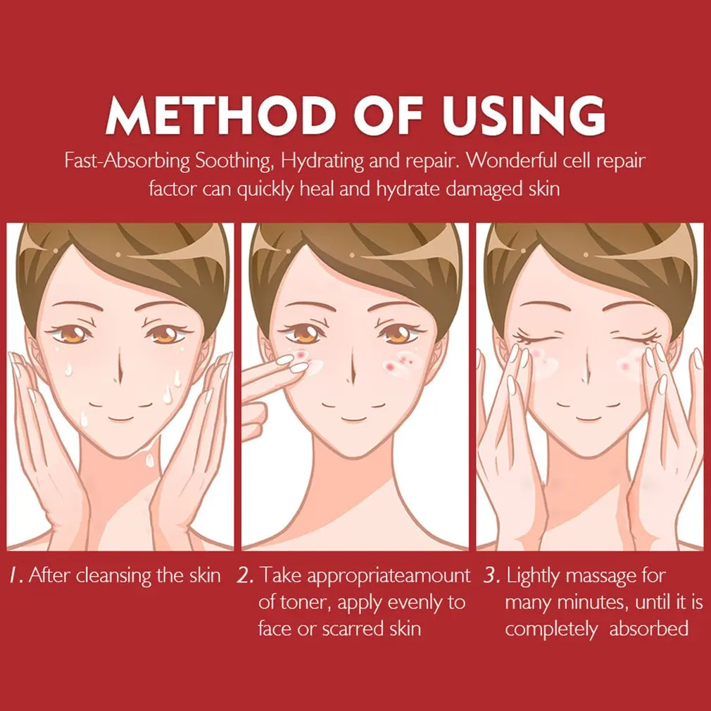 Тоник для восстановления шрамов может эффективно активировать жизненную силу клеток, восстановить жизненную силу кожи лица, увлажнить и усадить поры.
