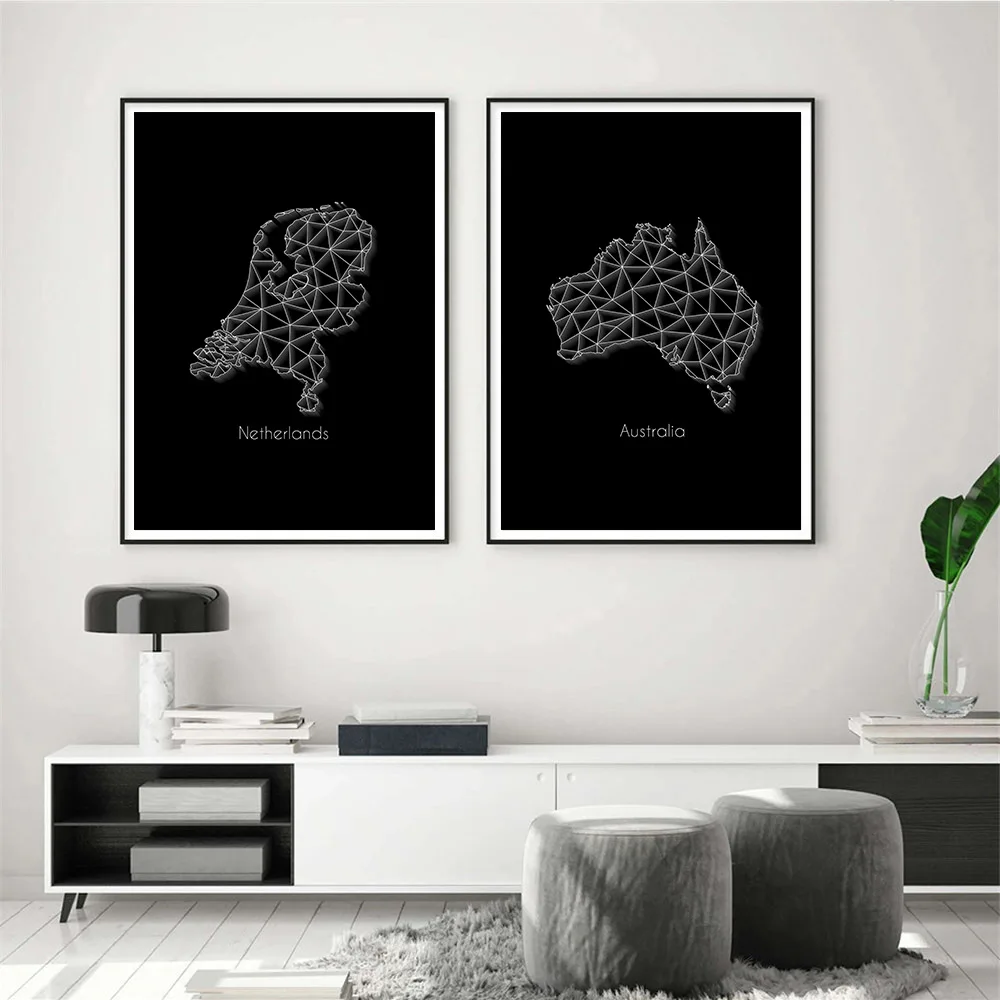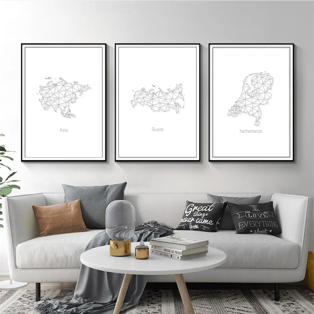 Абстрактная карта мира, Геометрическая линия, Настенная картина, черный, белый холст, картины, скандинавские картины для декора гостиной