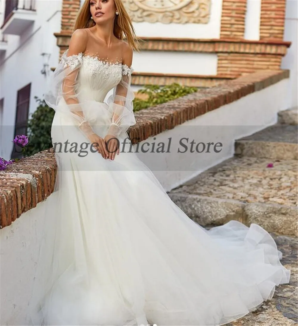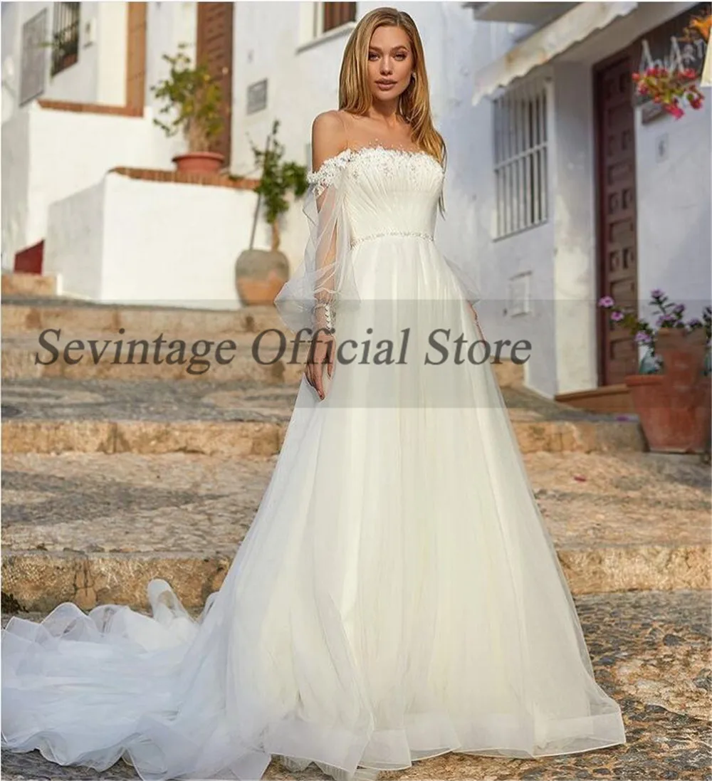 Кружевное свадебное платье Sevintage в стиле бохо, с длинными рукавами и аппликацией, свадебное платье цвета слоновой кости, 2021