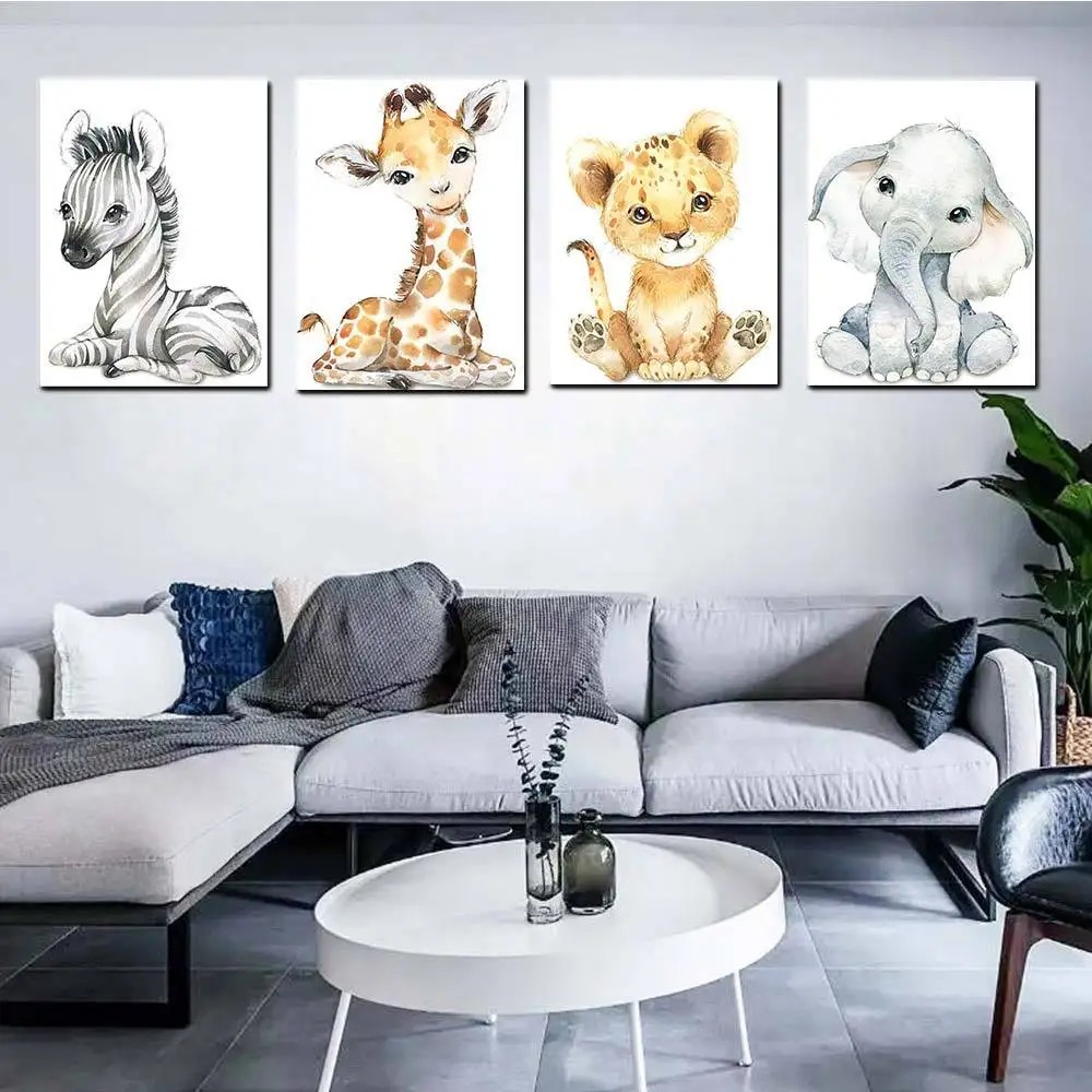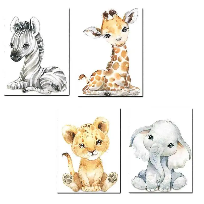 Горячая мода животных холст детская плакат для детской стены искусства, объемная печать, животные картина Nordic детские украшения в спальню