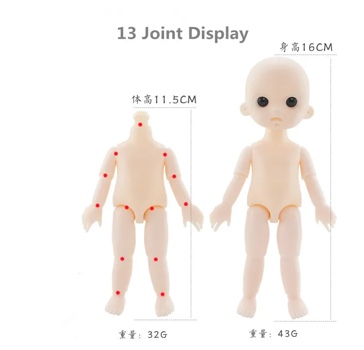 Новинка 16 см Bjd кукла голый корпус белая кожа макияж 13 подвижных...
