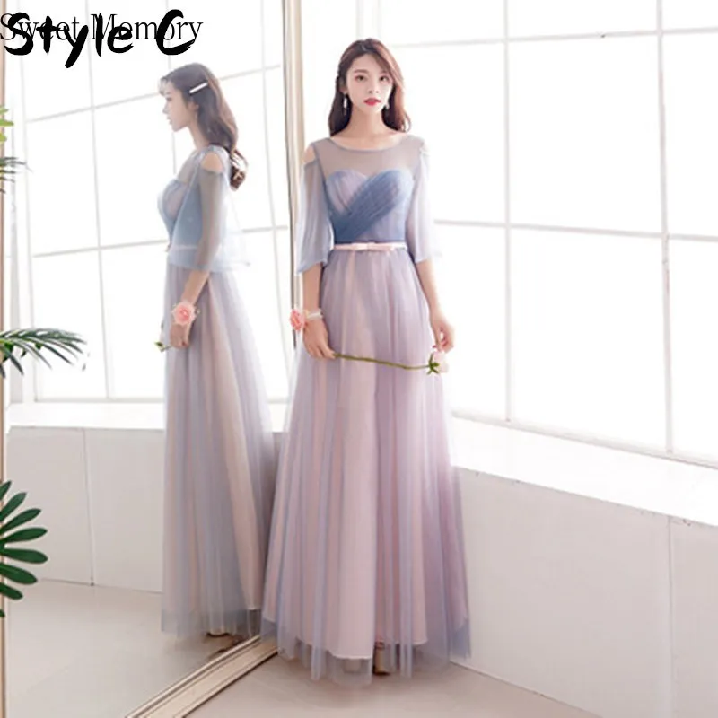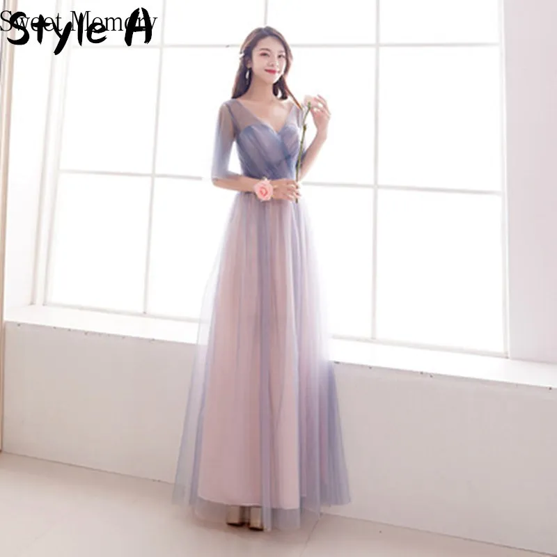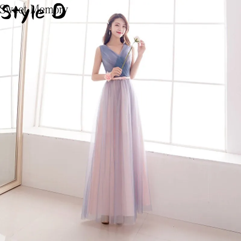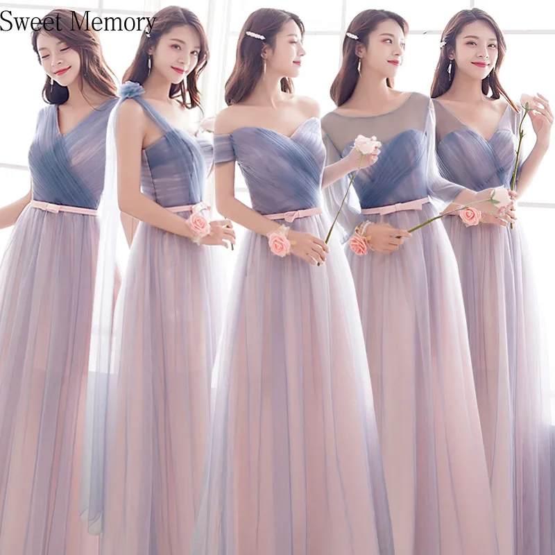 Милые розовые, синие, серые тюлевые Платья для подружек невесты, модные, женские, трапециевидные, длинные, женские, на шнуровке, формальные, свадебные, вечерние платья