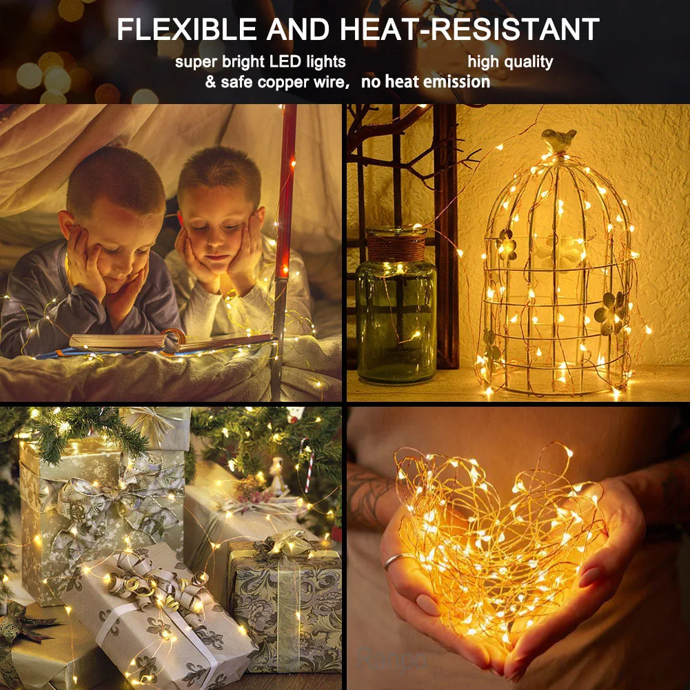 Светодиодная гирлянда из медной проволоки, 1-10 м, USB или батарея, светильник режимов, дистанционное управление, сказочные гирлянды для свадьбы, Рождественский Декор