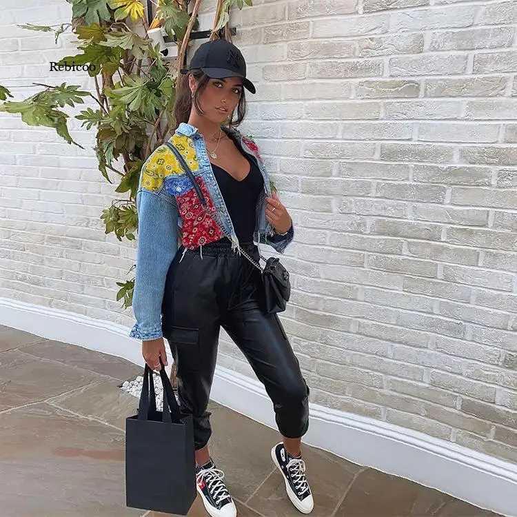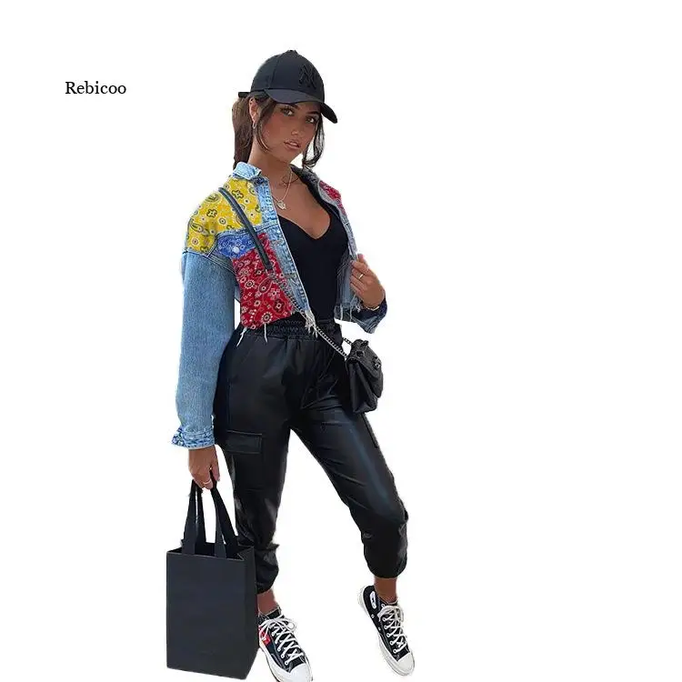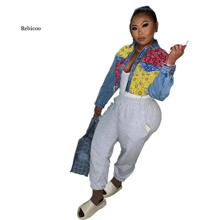 Женская джинсовая куртка, джинсовые пальто, зимняя богемная укороченная одежда, модная женская винтажная одежда с длинным рукавом, большие размеры