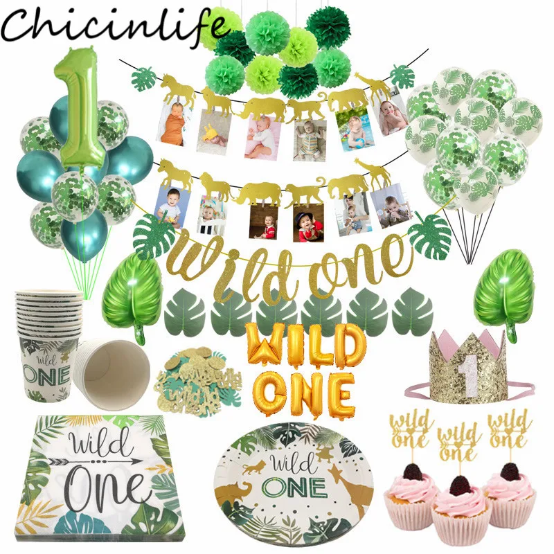 Chicinlife дикая одноразовая посуда на одну тему баннер для капкейков Топпер пальмовый лист воздушный шар для детей украшение на 1-й день рождения