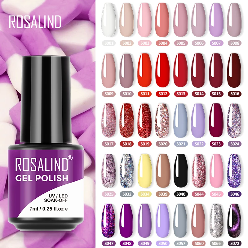 Гель-лак ROSALIND 7 мл, Блестящий лак для ногтей, все для ногтей, маникюрный маникюр, основа для ногтей, верхнее покрытие, УФ полуперманентные гель-лаки