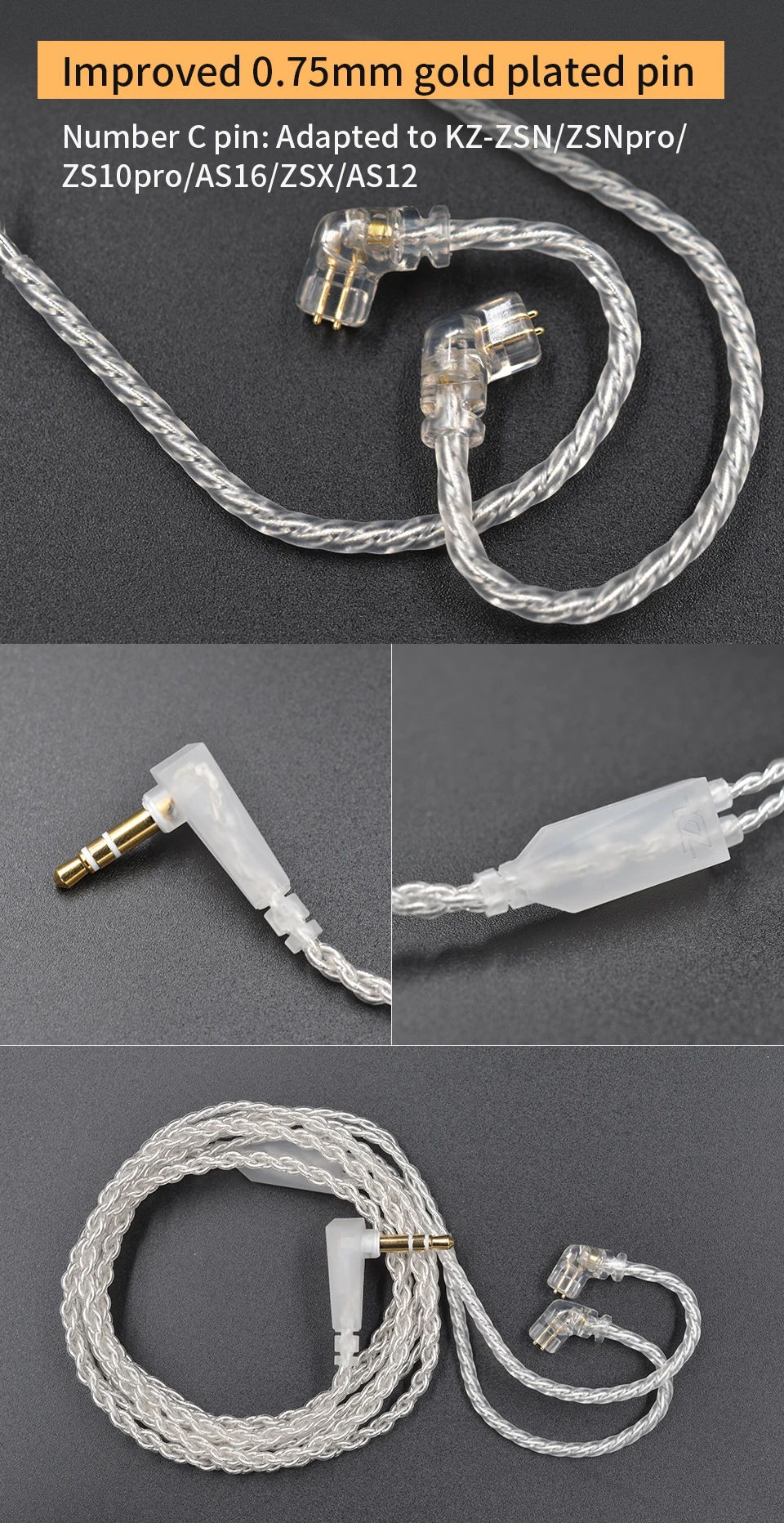 Кабель для гарнитуры KZ ZSN с посеребренным покрытием, обновленный ...