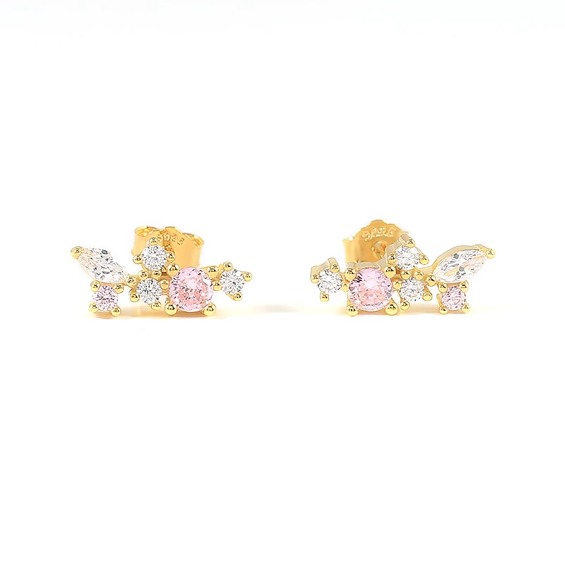 Женские серьги-гвоздики из серебра 925 пробы с цветным фианитом