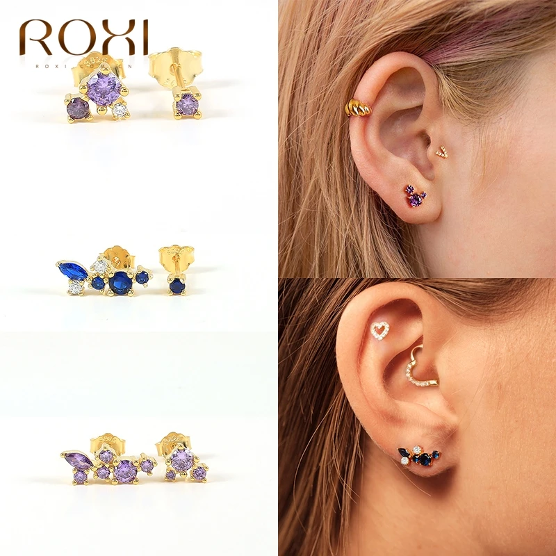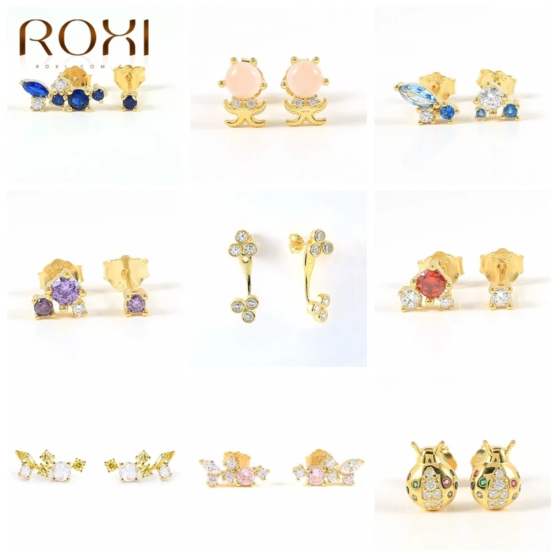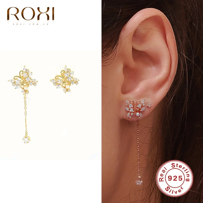 Женские серьги-гвоздики ROXI из стерлингового серебра 925 пробы с бабочкой, звездой, луной, пирсингом ушей Huggie, аксессуары для вечерние и свадеб